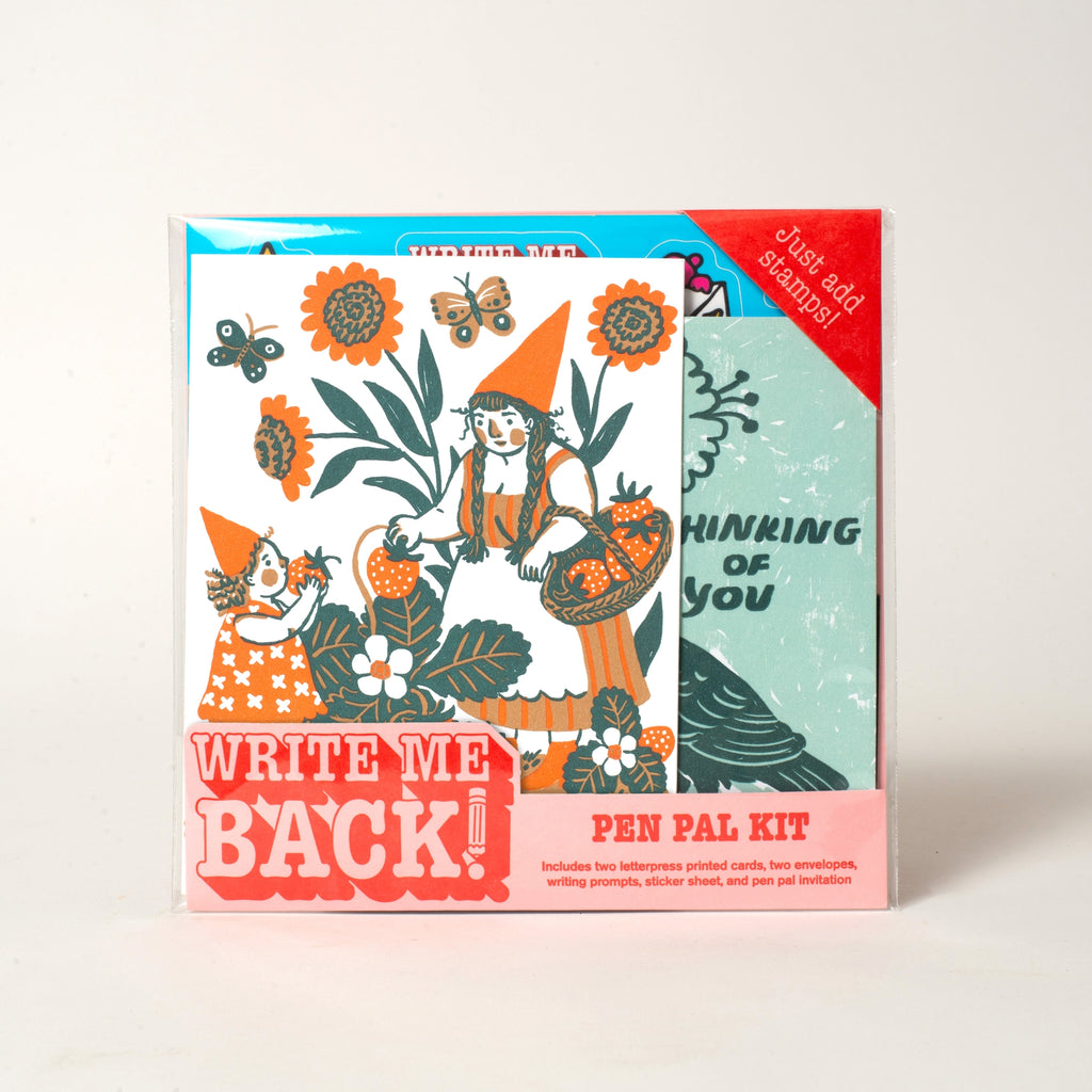 Send a card, get one back! Write Me Back! Pen pal kits make it super easy to write to a friend, and for them to write you back. When you send your card, you'll also send a miniature card and envelope, so your friend can write back to you, right from their mailbox!