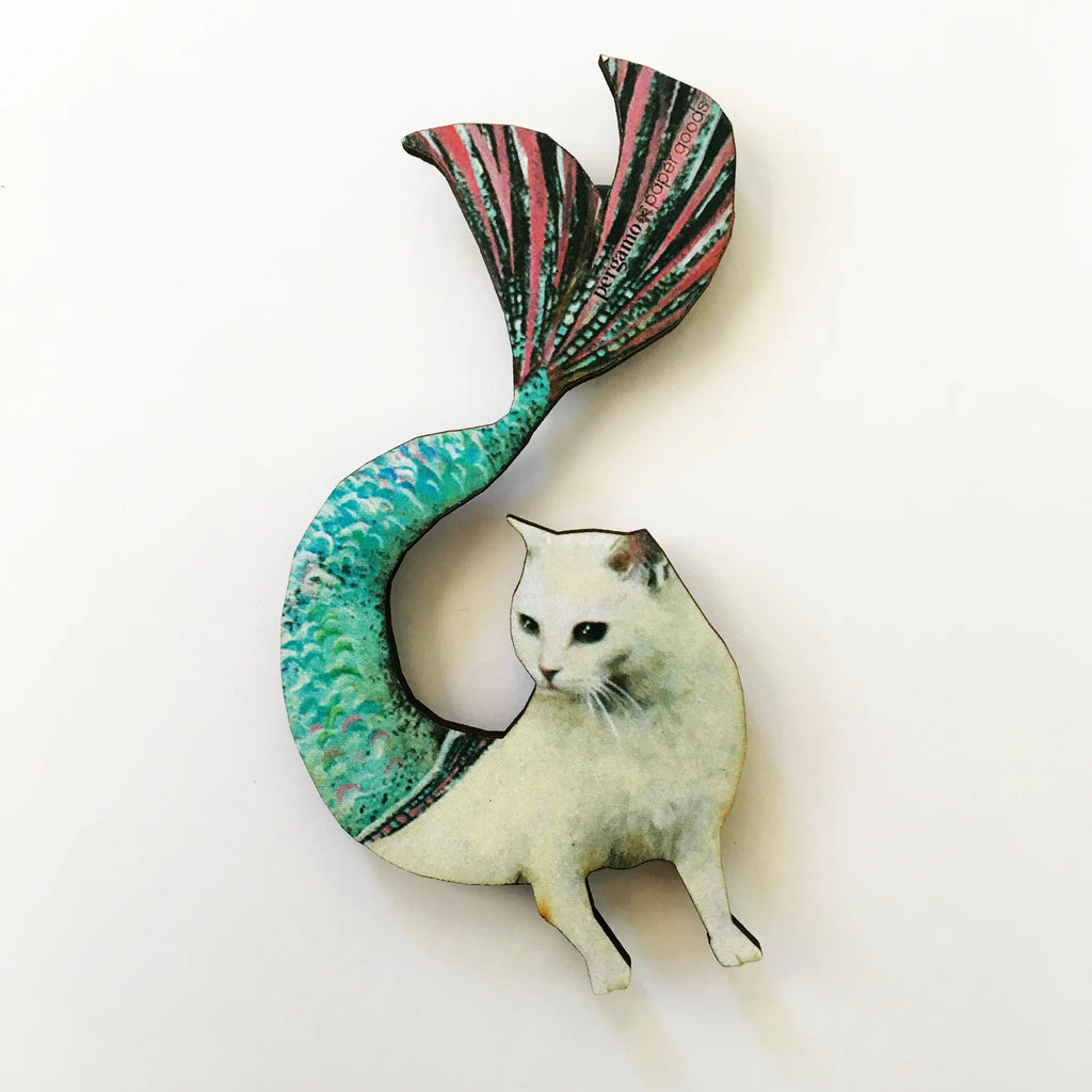 Step up your magnet game with Pergamo Paper Goods! You may have some magnets on your fridge, but if you don't have any of these illustrated animal magnets, you're missing out: each fabulously dressed up animal or mermaid creature was originally handmade mixed media art by Gianna Pergamo. A high quality reproduction of the animal character has been adhered to wood and laser cut to its silhouette. They're then varnished for longevity and attached to a strong magnet which can easily hold up several pieces of paper. They make great birthday, holiday, and housewarming gifts for animal lovers.